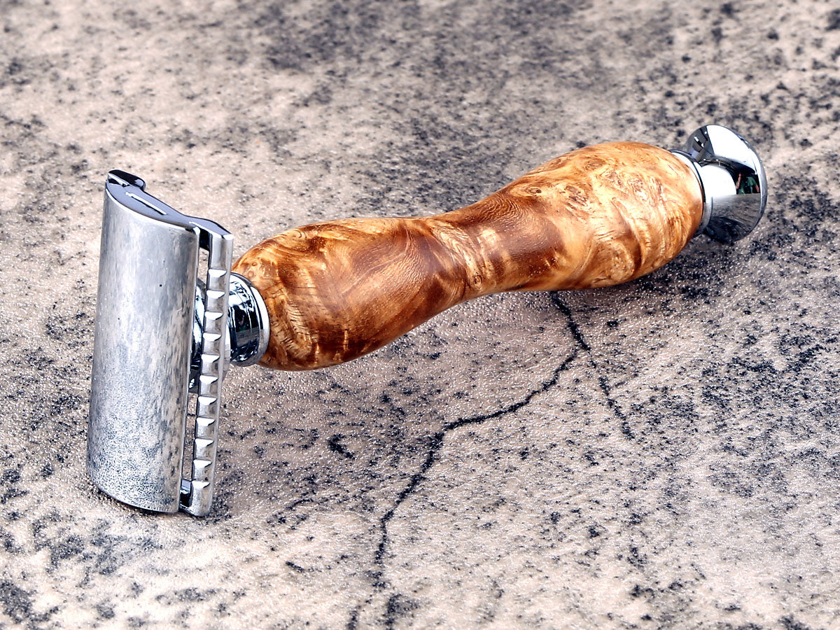 Wooden Safety Razor - Amboyna Burl II - Handmade in Ireland