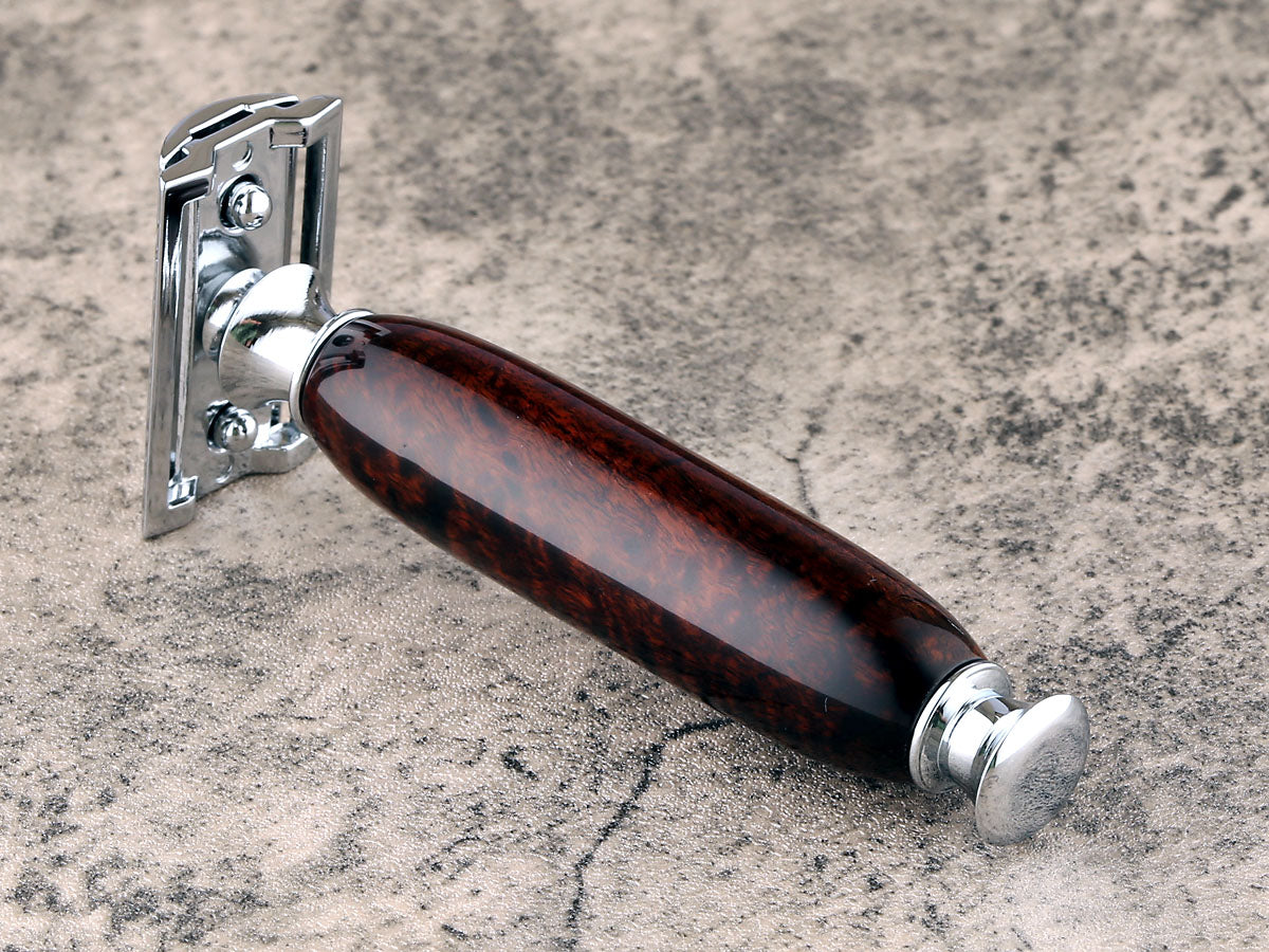 This beautiful Australian Western Myall Burl Wood Safety Razor features a closed comb design, for a comfortable shave in style. This is one of the rarest wood burls from Australia, only small pieces are occasionally available and harvested deep in the Australian outback from locations known only to locals.